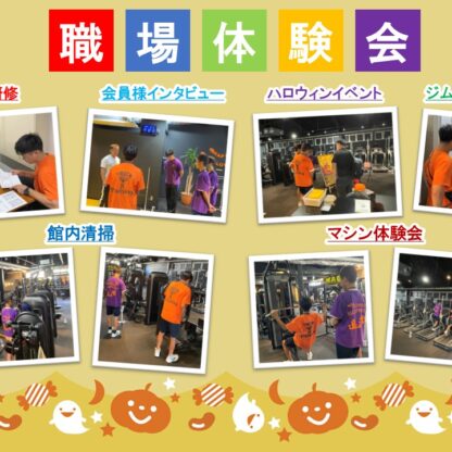 学生たちにはスタッフと同じユニフォームを着用してもらい、2日間、じっくりと職場体験を行いました。スポーツジムに初めて訪れる学生もおり、最初は緊張している様子が見られましたが、体験が進むにつれて、会員の皆様にも積極的に声をかけるようになりました。